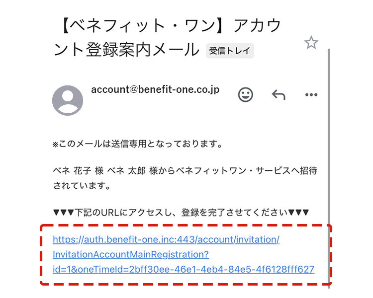 メールはbenefitone-platform@benefit-one.co.jpより配信しています。