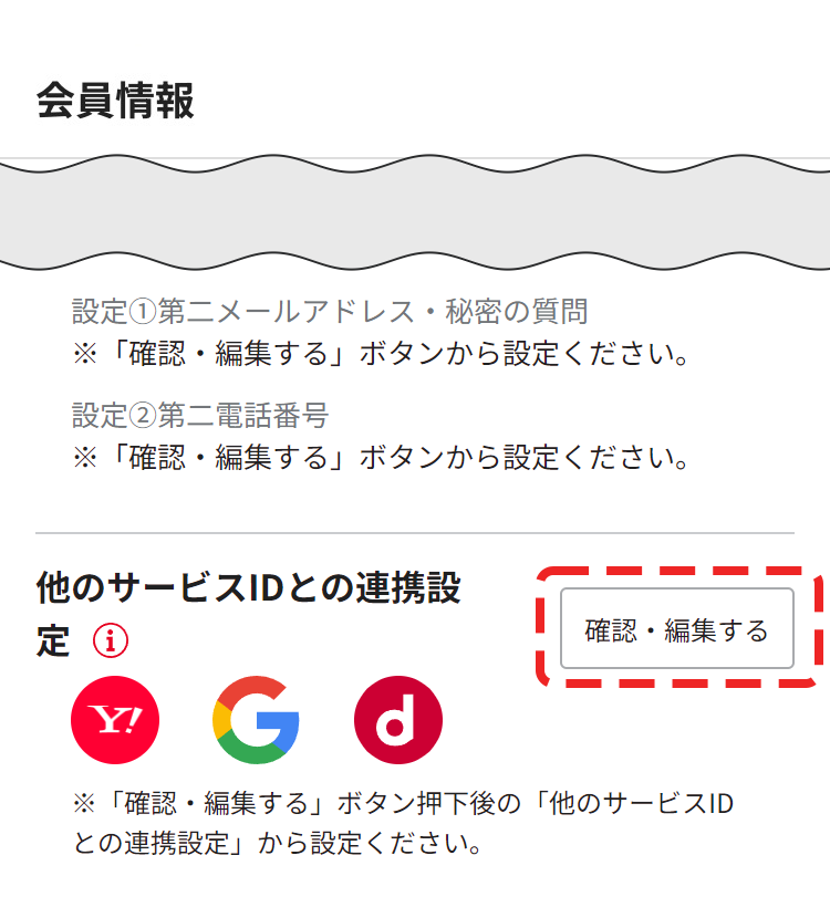 - ベネアカウントでログイン後、マイページ内の会員情報設定画面から「他サービスIDとの連携設定」の「確認・編集する」を押下してください。