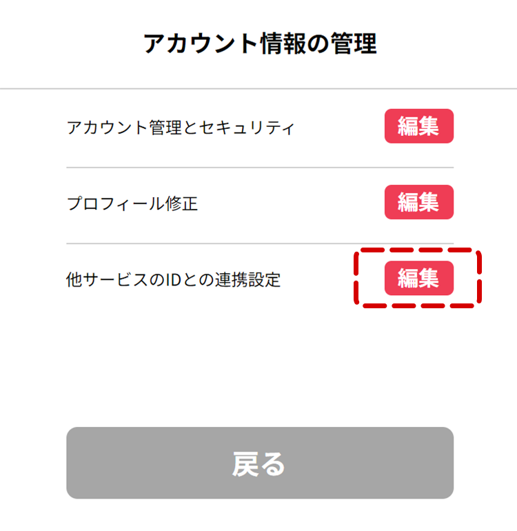- 「他サービスのIDとの連携設定」の「編集」を押下してください。