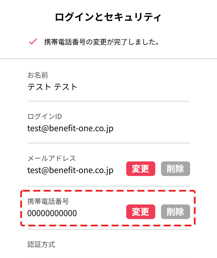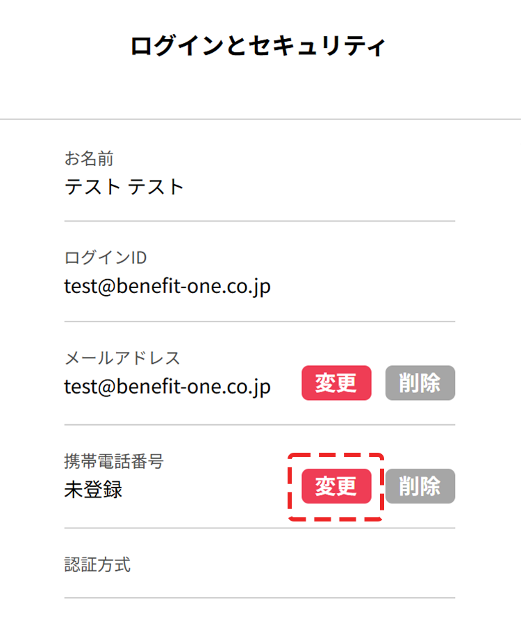 - 「携帯電話番号」の「変更」を押下してください。