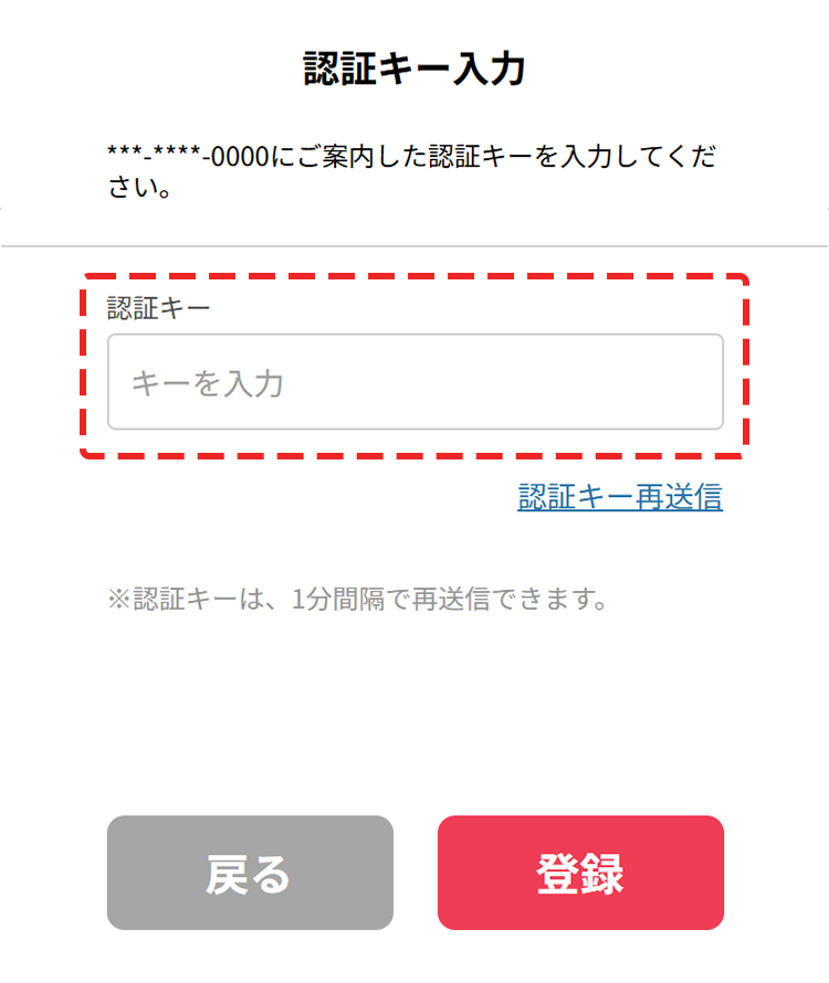 - 入力した携帯電話番号(SMS)宛に、認証コードが届きます。