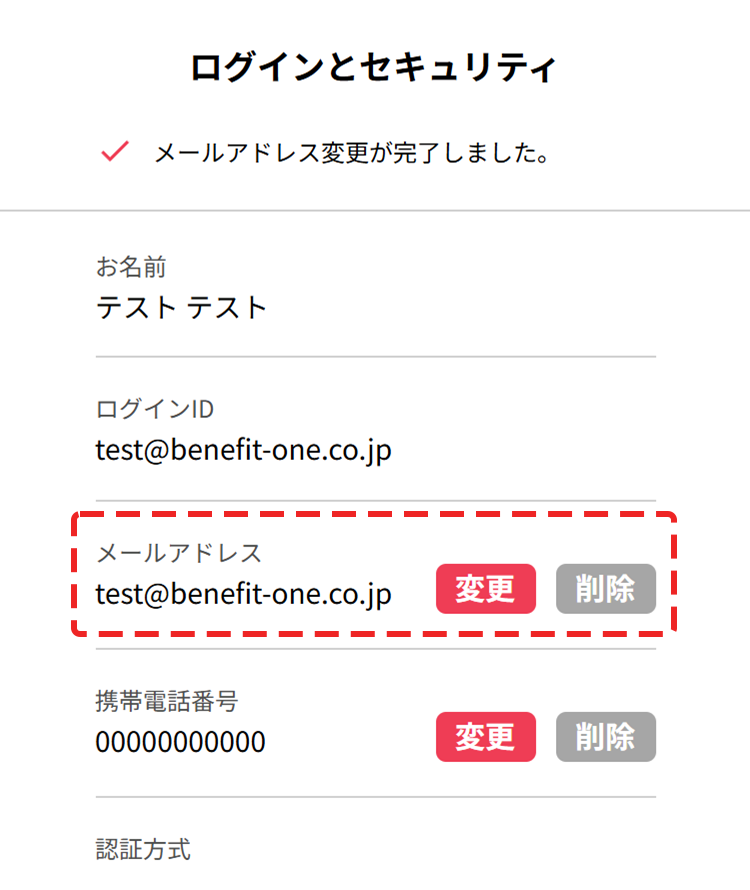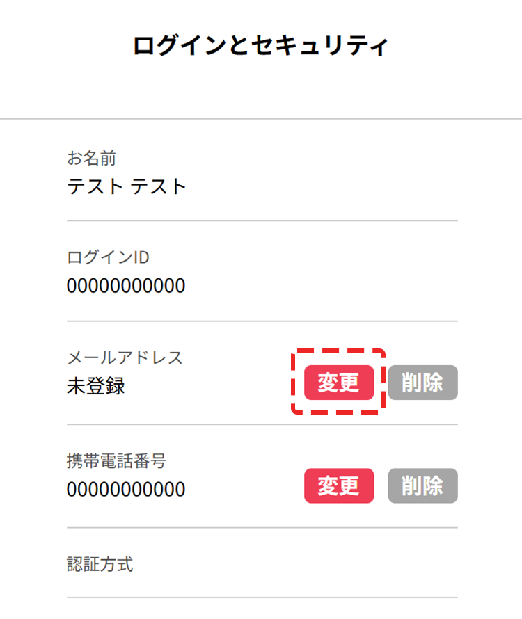 - 「メールアドレス」の「変更」を押下してください。