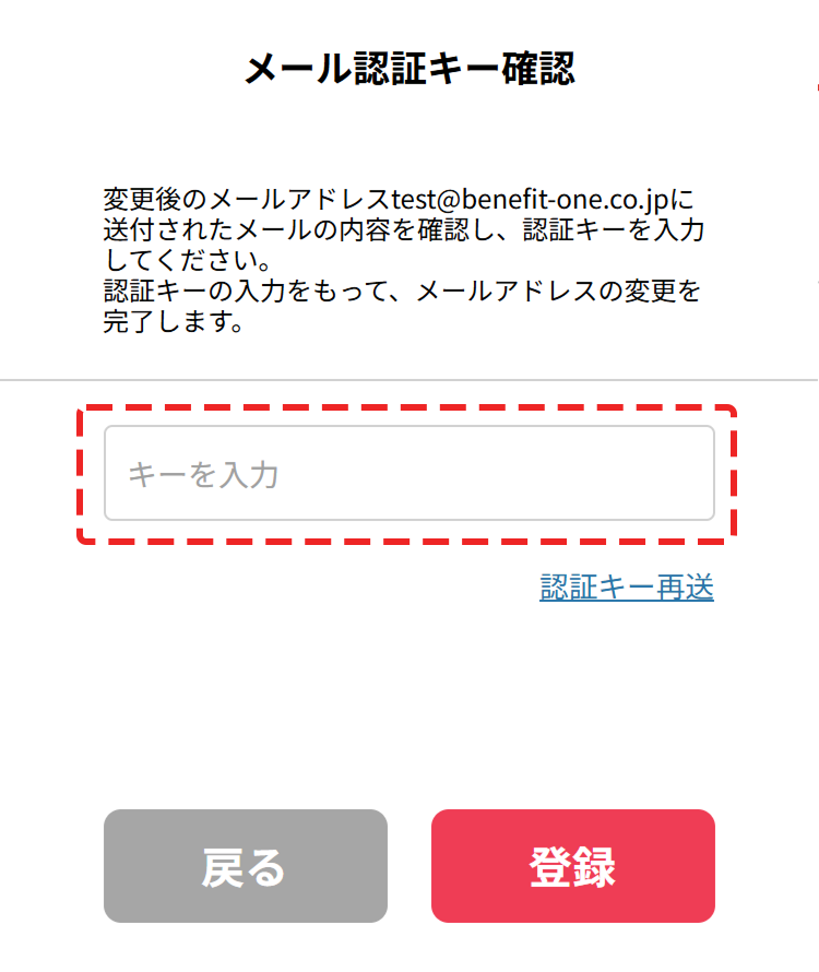 - ご本人様確認のため、ベネアカウント宛に認証キーを送信します。