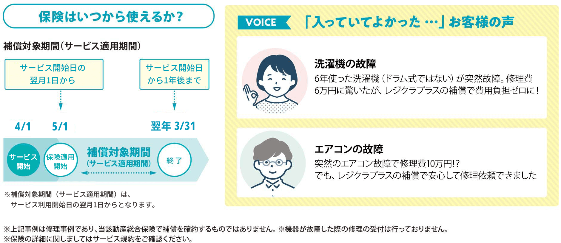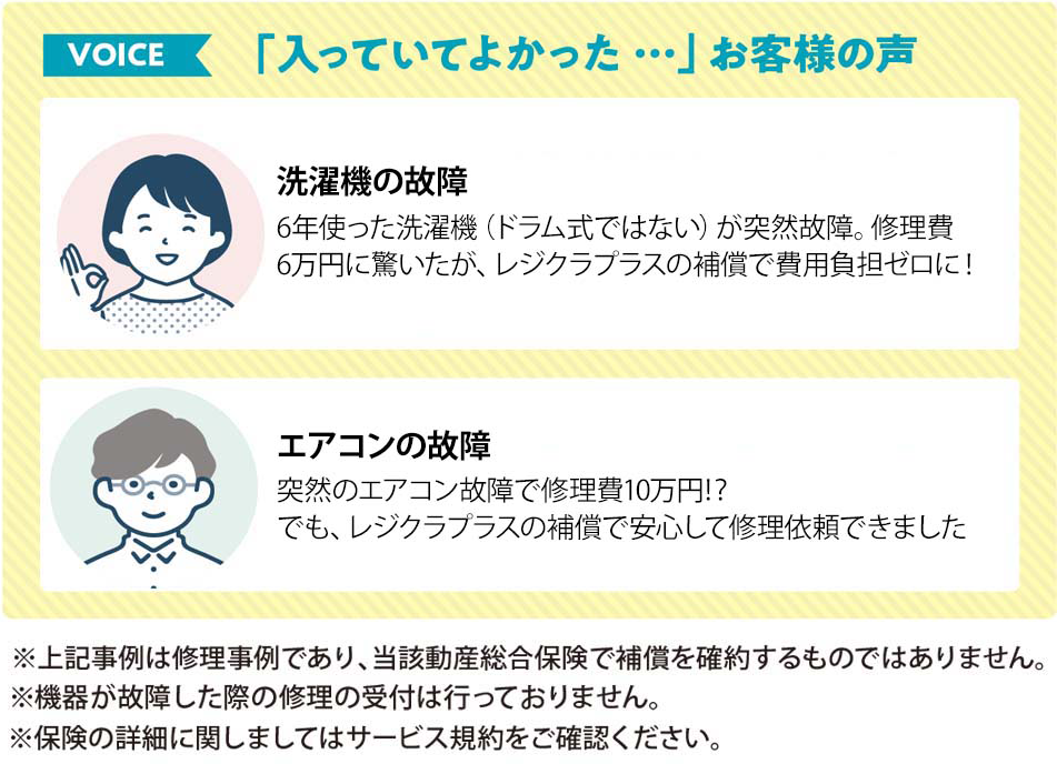 <レジクラプラス会員>が所有する家電の偶然な事故による修理費用を補償します!